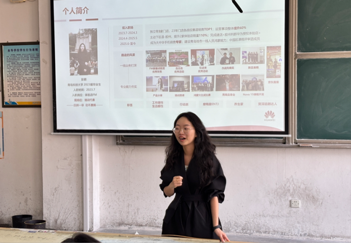 宣讲环节,华为惠通山东终端HRD吴欣佩负责人全面介绍华为发展情况,解读终端、运营商、企业业务三大核心业务板块,梳理消费群体与门店体系,阐释直播平台理念,重点介绍极具竞争力的薪资回报、完善的人才培养体系与有温度的工作氛围。
