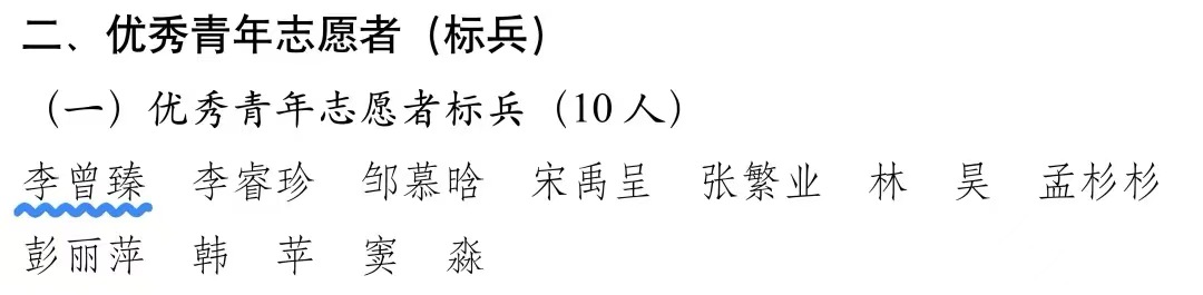 青年学子不负韶华、奋勇争先,展现出新时代艺术青年的责任与担当。绘画232班高雨菲当选“优秀共青团干部标兵”,环艺231班李曾臻获评“优秀青年志愿者标兵”,33名青年学子荣获“优秀共青团员”称号,17名青年学生骨干当选“优秀共青团干部”,33名青年学生获评“优秀青年志愿者”。他们中既有勤奋好学、专业突出的学业榜样,也有热心公益、服务社会的志愿先锋,还有履职尽责、团结同学的学生骨干,用实际行动践行“请党放心,强国有我”的青春誓言。